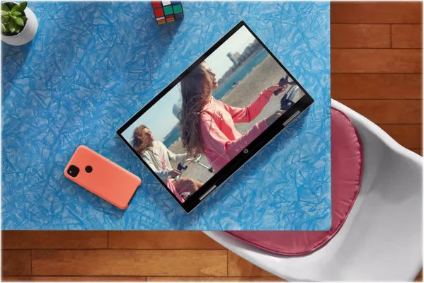 The HP Pavilion x360 14 Convertible offers the right angle for all productivity needs. With HP Fast Charge, you can stream your favorite series as long as you want. Enjoy optimal sound for all your entertainment needs with the two speakers with audio from B and O. The environmentally oriented development of the HP Pavilion x360 is reflected in the sustainable recycled plastics that might otherwise have ended up in the sea.