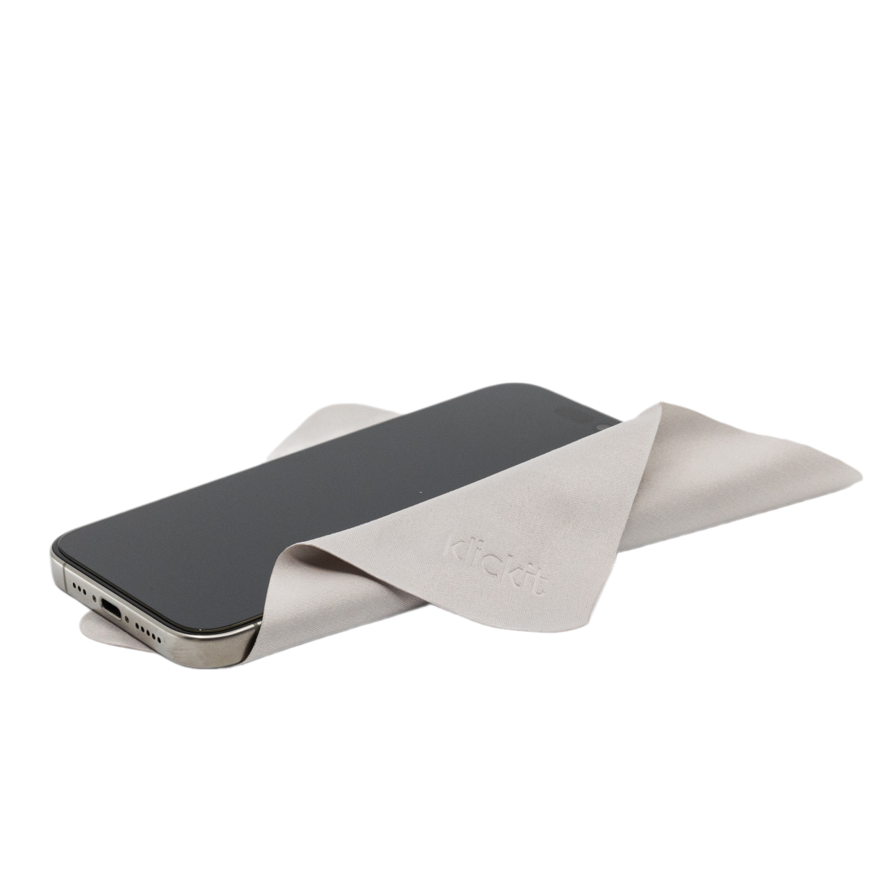 The klickIT microfiber cloth is the ideal solution for cleaning sensitive surfaces. Thanks to its mix of 80% polyester and 20% nylon, it ensures streak-free cleanliness without leaving scratches. The microfiber cloth cleans screens, glasses, camera lenses and other sensitive surfaces gently and thoroughly.