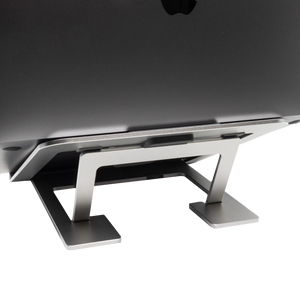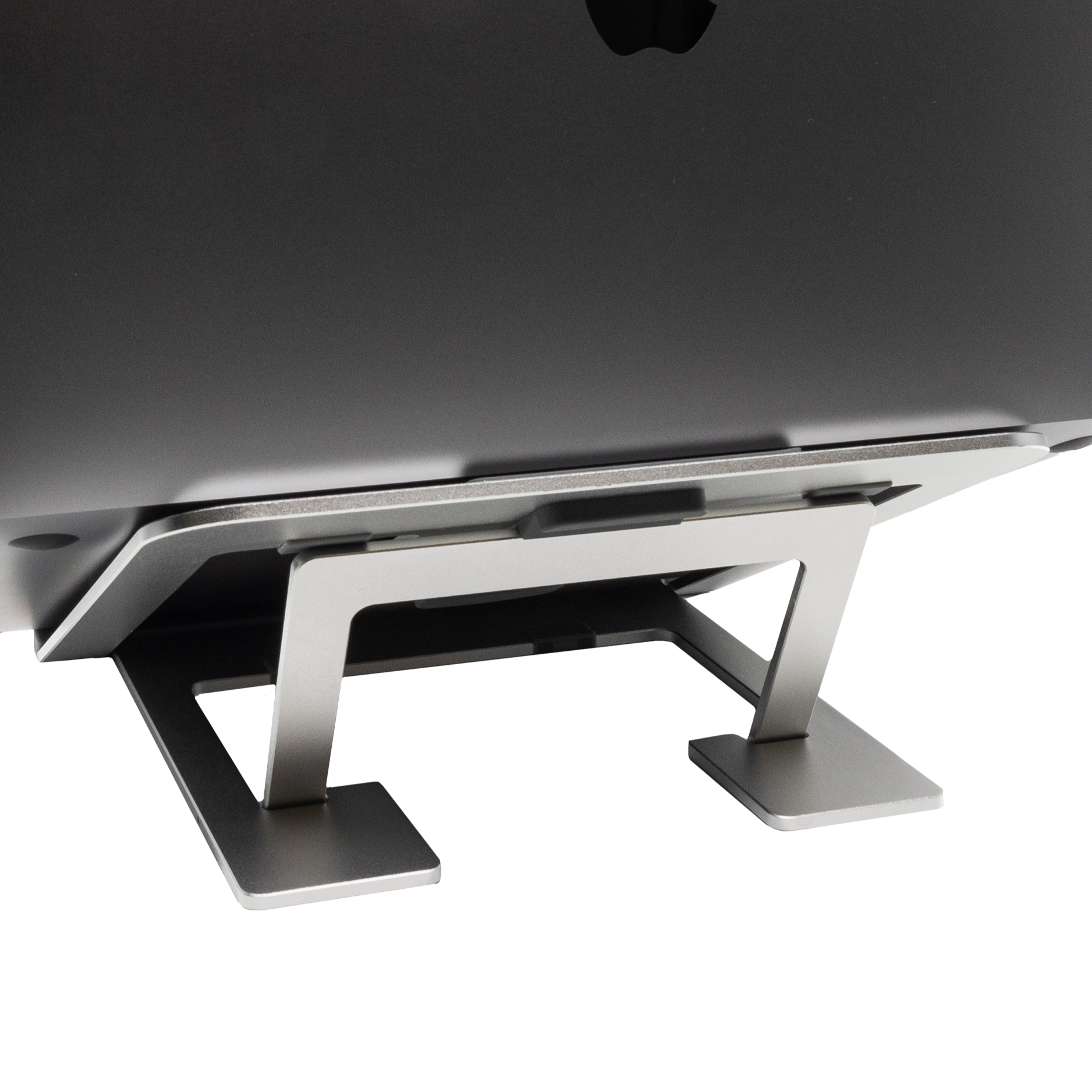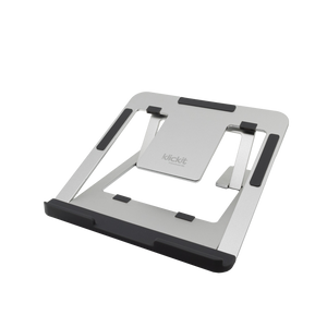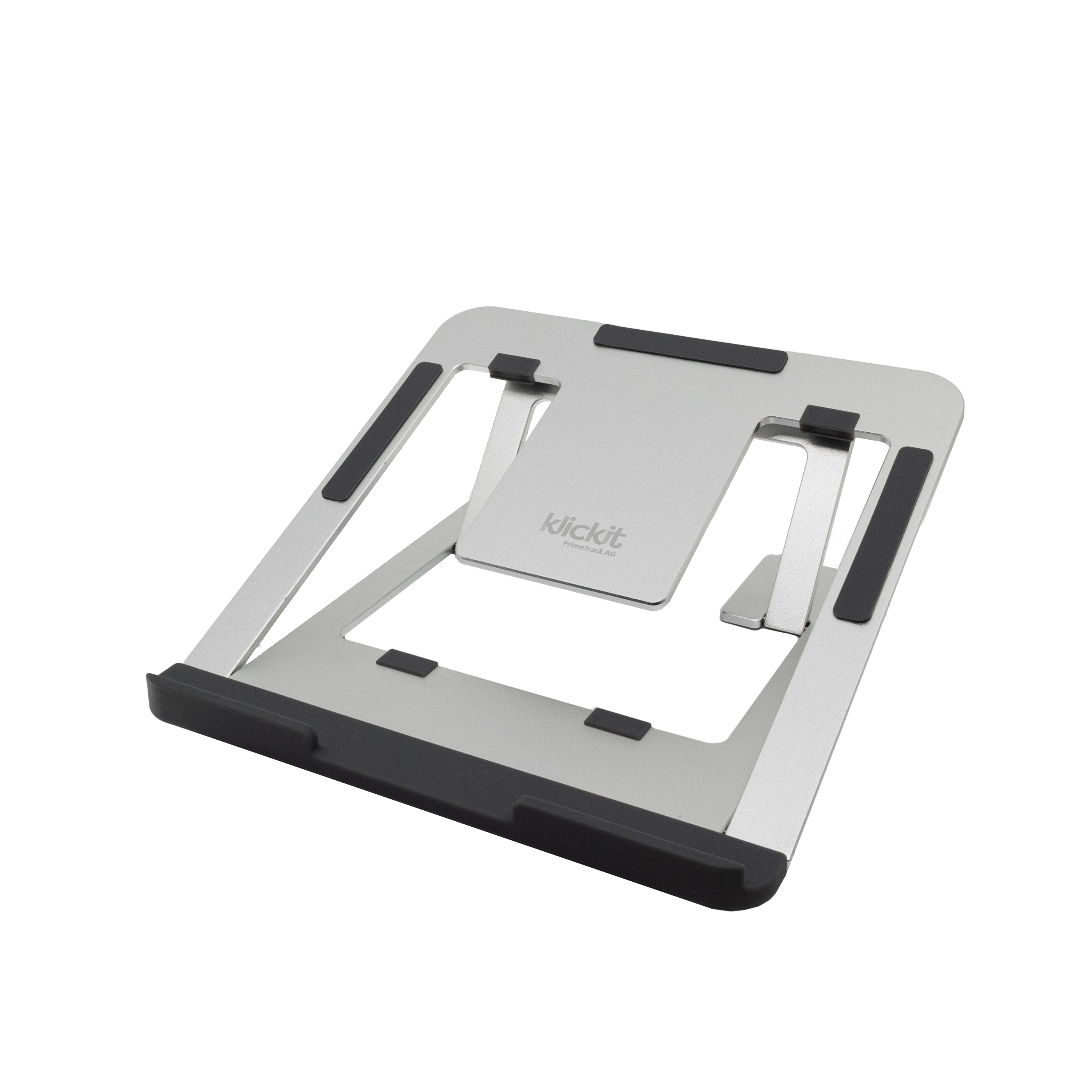 The klickIT multi-angle holder for notebooks combines stability, flexibility and comfort in an elegant design. Made from 4 mm thick aluminum and non-slip silicone, it is the ideal solution for ergonomic work and mobile use. With height-adjustable positions and 8 tilt angles, it ensures an optimal working position. Stable and portable, the holder is suitable for devices from 9.7 to 15.6 inches and can withstand loads of up to 10 kg.